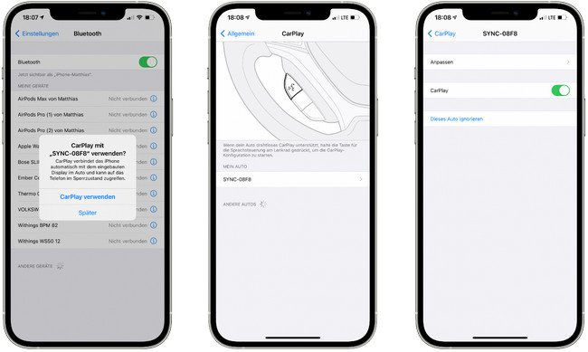 Schritt 2 Verbinden Sie Ihr iPhone über ein Kabel oder Bluetooth mit dem Auto.